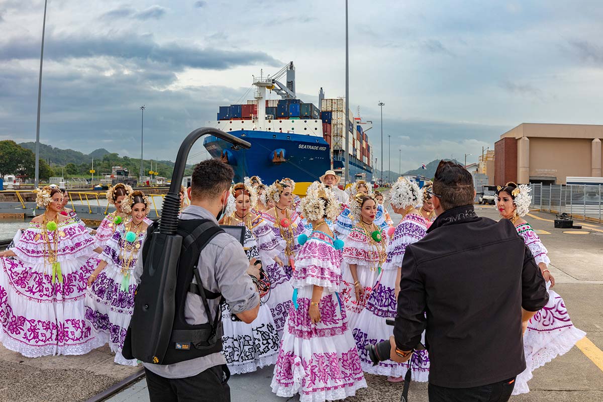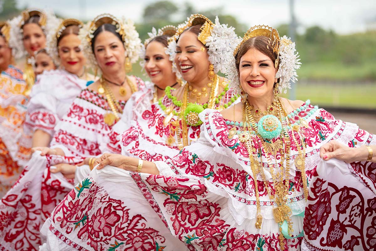 Recientemente, la agrupación Polleras de Mi Tierra llevó a cabo una sesión fotográfica con 30 polleras de gala en las esclusas de Miraflores.