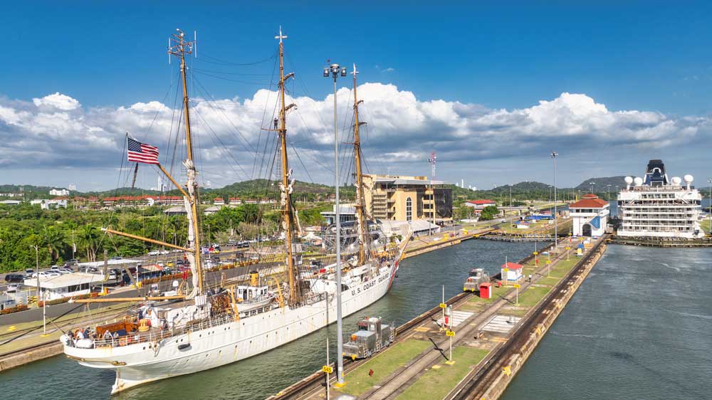 El histórico buque escuela Eagle, un velero de tres mástiles de unos 90 metros de eslora, transitó el Canal de Panamá el pasado 25 de abril, en dirección sur, a través de las esclusas de Gatún. Este paso formó parte de una gira por distintos puertos en Costa Rica, México, Estados Unidos y Canadá. Durante el tránsito, la Guardia Costera de los Estados Unidos llevó a bordo a unos 20 miembros del Servicio Aeronaval de Panamá para realizar maniobras de entrenamiento. El buque tiene previsto regresar a Panamá en septiembre.