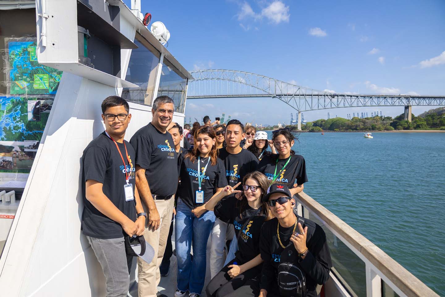 El periplo empezó en Isla Perico, desde donde partieron rumbo a Pedro Miguel, por el carril oeste de las esclusas de Miraflores, pasando por debajo de los puentes de Las Américas y Centenario. “Fue un sueño largamente anhelado. Como ingeniero me causó una gran fascinación ver de cerca una obra de tal envergadura; como amante de la historia fue vivir un momento importantísimo del desarrollo de la humanidad, especialmente por estar acompañado por el ‘futuro’, es decir, por los jóvenes escritores de #500Historias”, plantea Rodríguez.